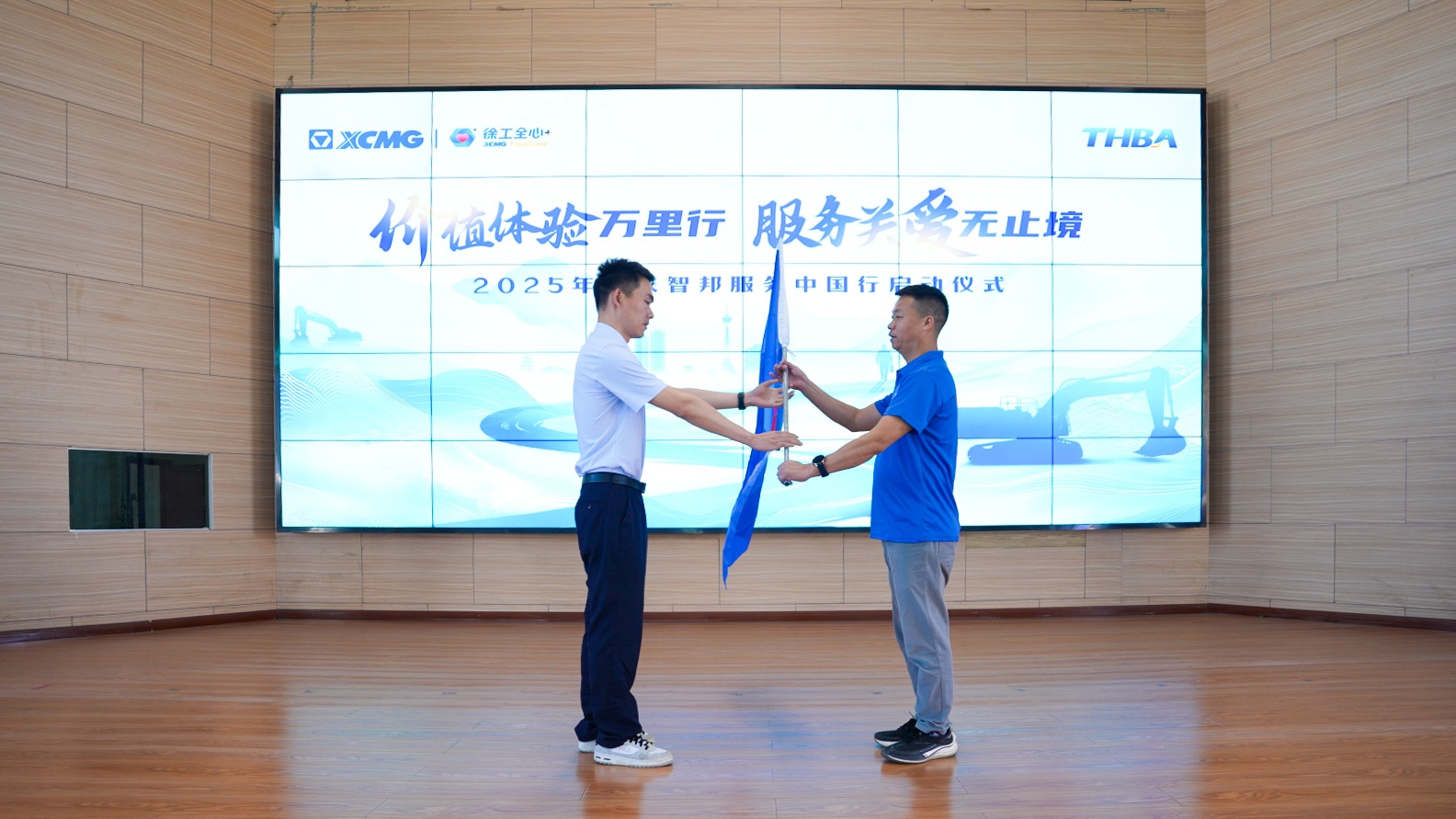 匠心致遠(yuǎn),奮楫篤行向未來(lái)。在激昂的樂(lè)曲聲中,服務(wù)中國(guó)行授旗儀式莊嚴(yán)舉行。徐州徐工挖掘機(jī)械有限公司駐重慶服務(wù)經(jīng)理張旭將這面承載著責(zé)任與擔(dān)當(dāng)?shù)钠鞄茫嵵厥谟柚貞c智邦工程機(jī)械管理有限公司服務(wù)總監(jiān)張勇手中。接過(guò)旗幟的張總目光如炬,雙手緊握旗桿,也握住了萬(wàn)千客戶的信任與期待。飄揚(yáng)的旗幟下,是智邦人"服務(wù)至上"的堅(jiān)定誓言,是"精益求精"的工匠精神,更是對(duì)"中國(guó)制造"品質(zhì)承諾的永恒堅(jiān)守。這一刻,榮耀與責(zé)任同在,初心與使命同行!